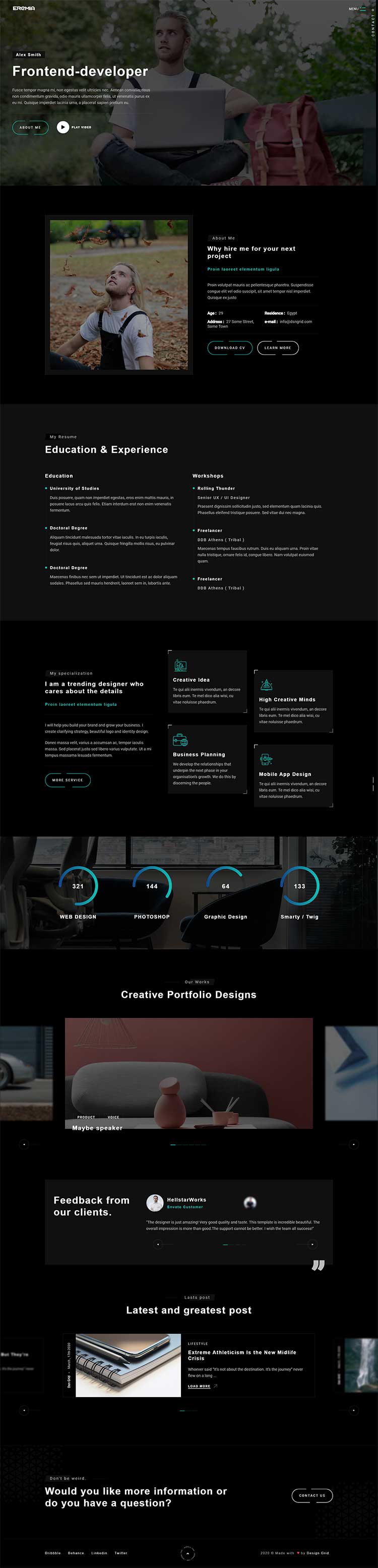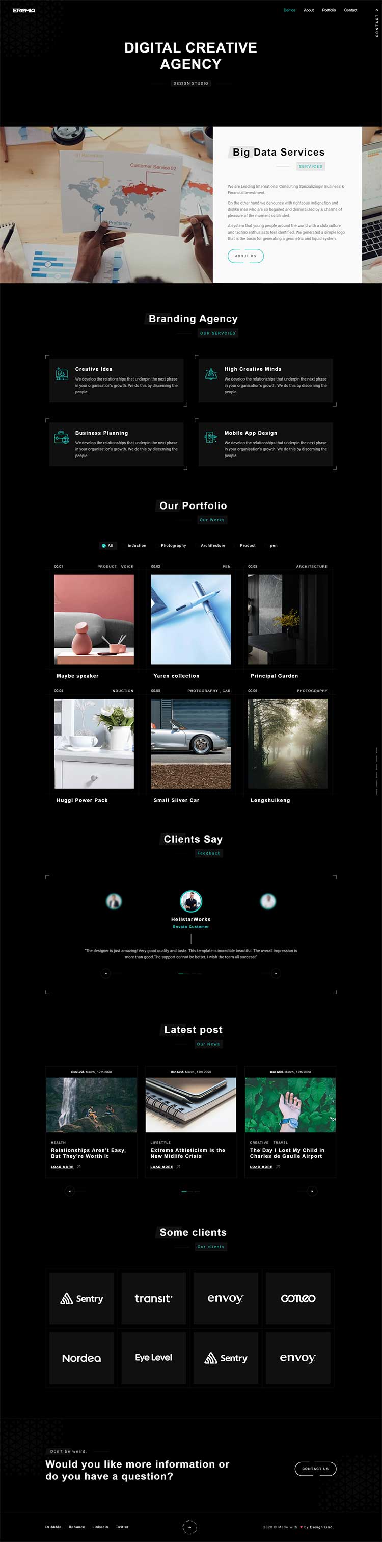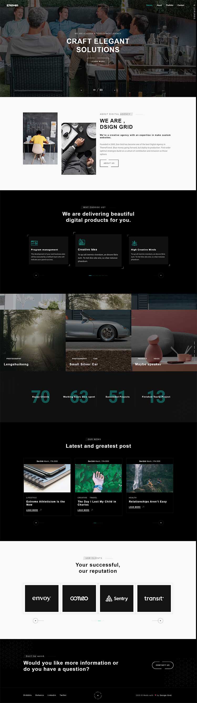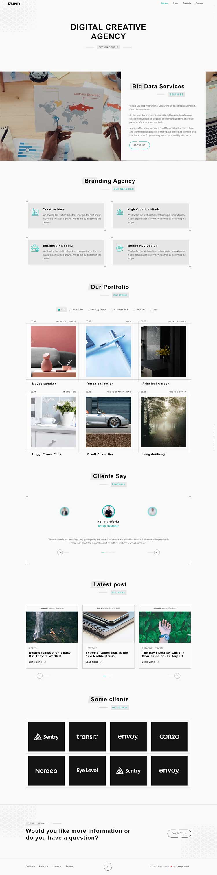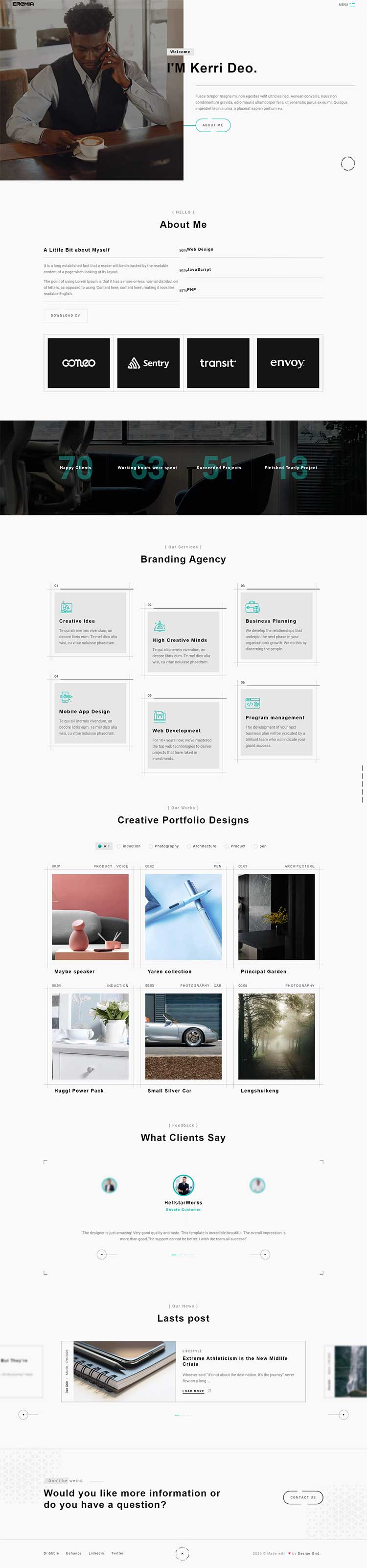 Eremia is a new portfolio concept for creative agencies and freelancers. Graphic designers, illustrators, photographers or any kind of creative is now able to create a quick and easy portfolio to showcase their work with a distinctive and creative touch.