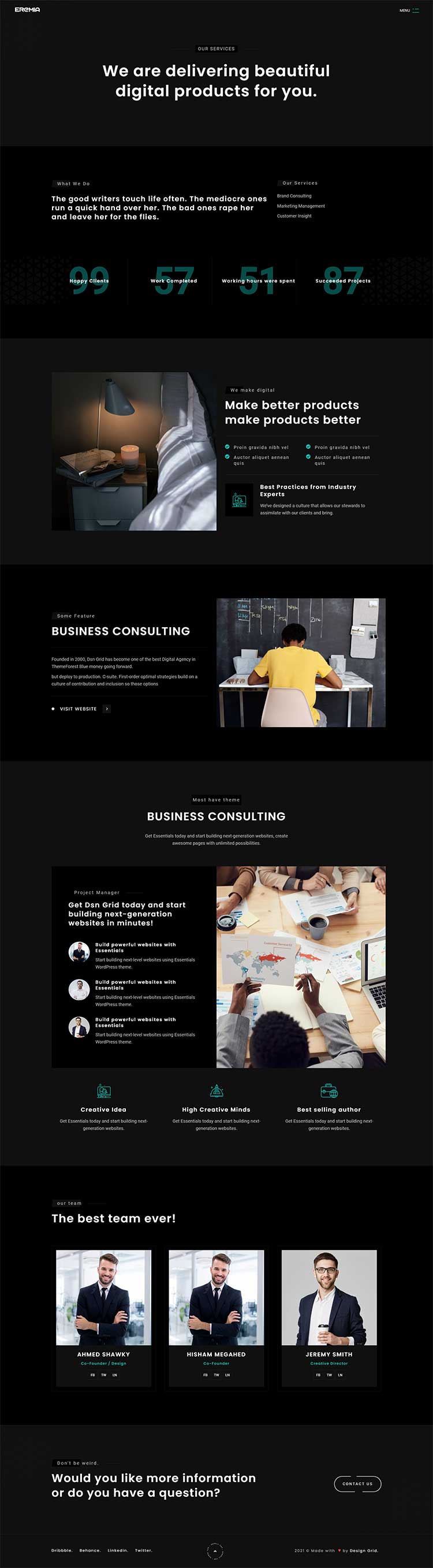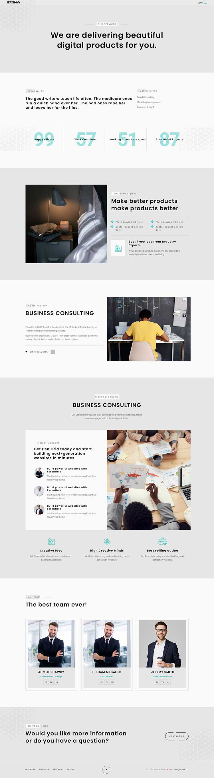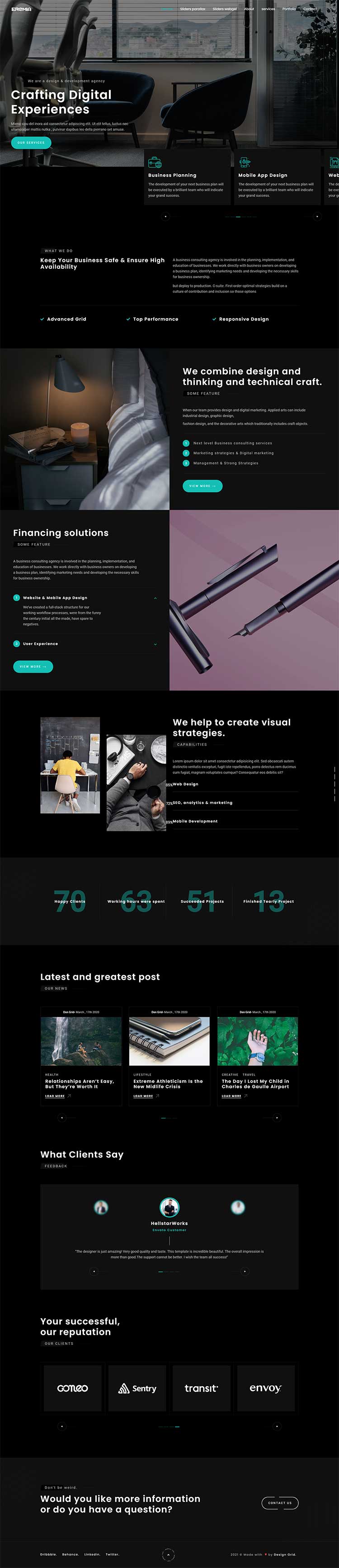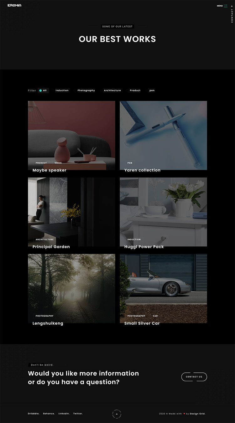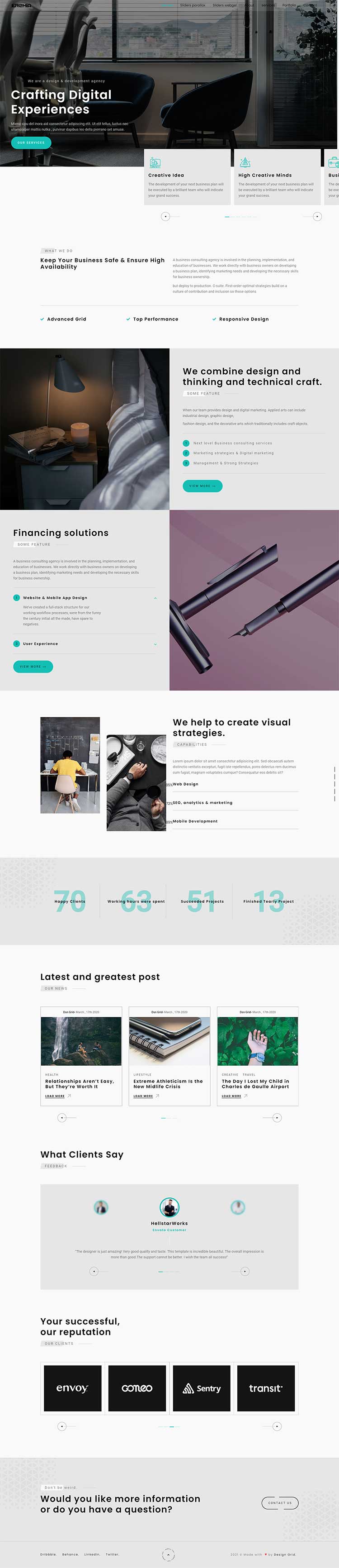 Eremia is a new portfolio concept for creative agencies and freelancers. Graphic designers, illustrators, photographers or any kind of creative is now able to create a quick and easy portfolio to showcase their work with a distinctive and creative touch.